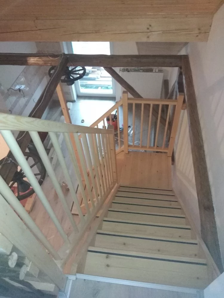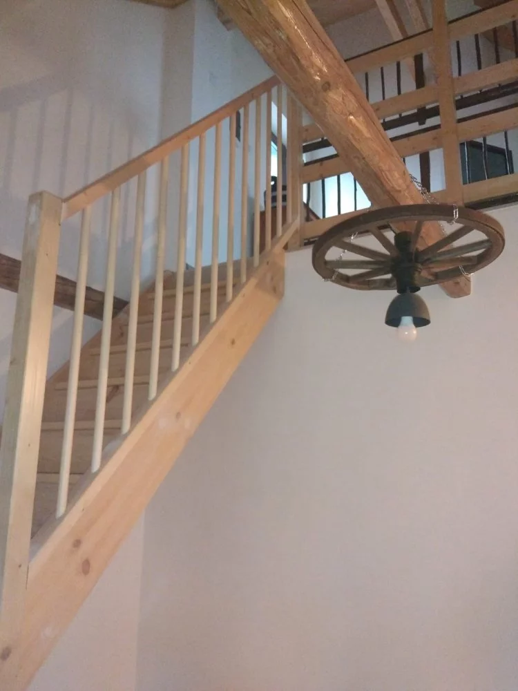Als je op zoek bent naar een veilige oplossing om naar boven te lopen is een bordestrap de oplossing. Wij maken deze trappen van massief vurenhout(op aanvraag zijn beuken of eikenhout mogelijk). Ze zijn zeer stevig en sterk. Dankzij het bordes kun je veilig de trap op lopen, daarnaast is het zeer gemakkelijk met grote attributen zoals een wasmand. Op aanvraag kunnen wij de trap voorzien van een hekwerk op de trapboom (Dit is standaard niet inbegrepen).