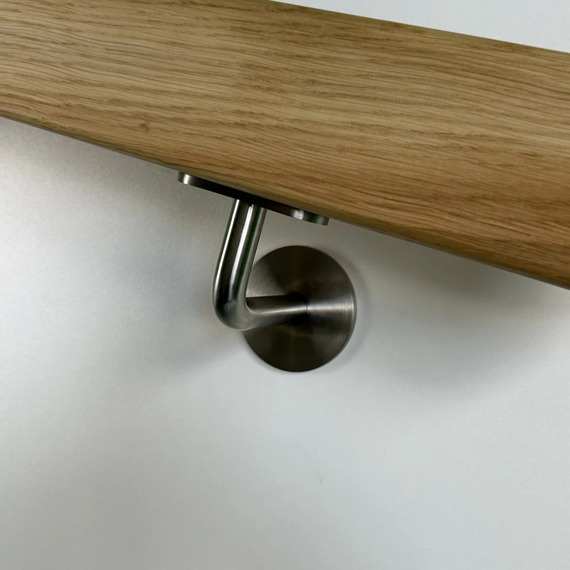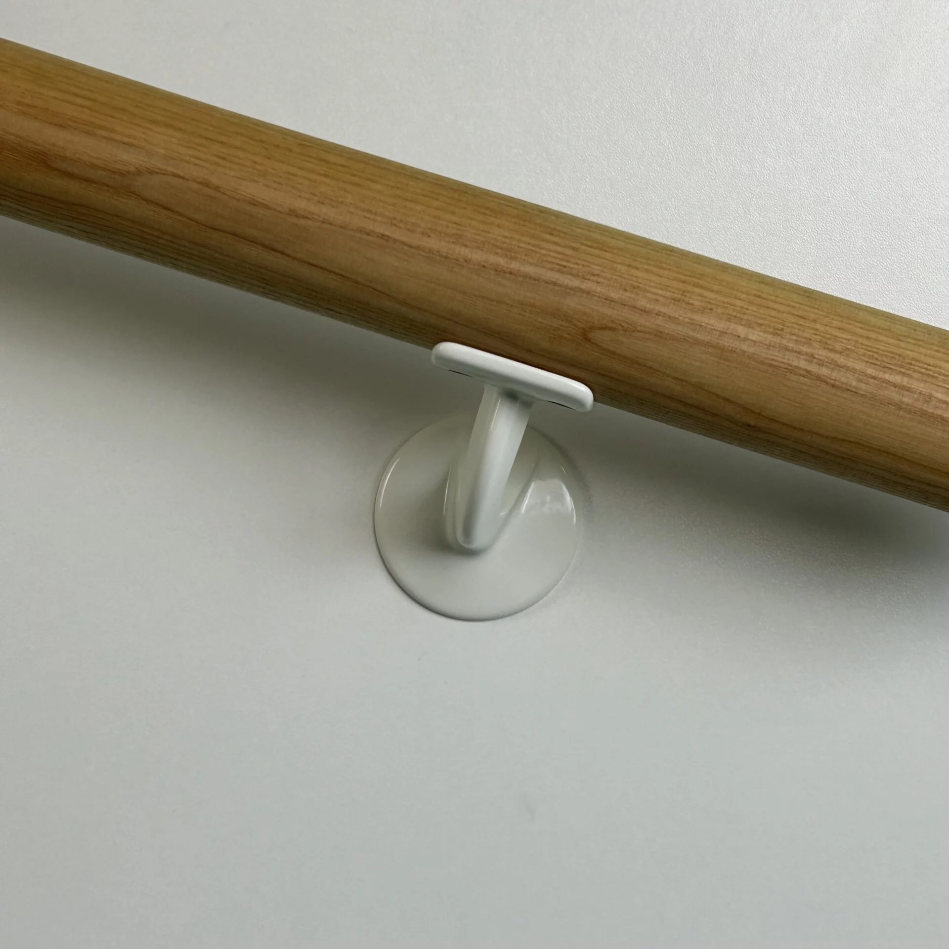 Witte leuninghouder voor vlakke trapleuningen zoals vierkant of sleutelgatprofiel.
