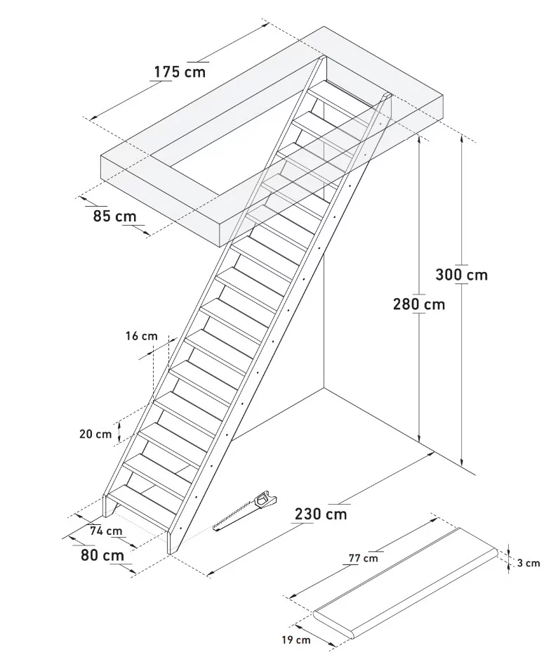 Het is mogelijk om van deze trap een stuk af te zagen / in te korten. Zo is deze trap in veel situaties toepasbaar.