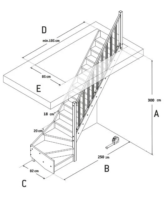 Hoogte van de trap: 300 CM