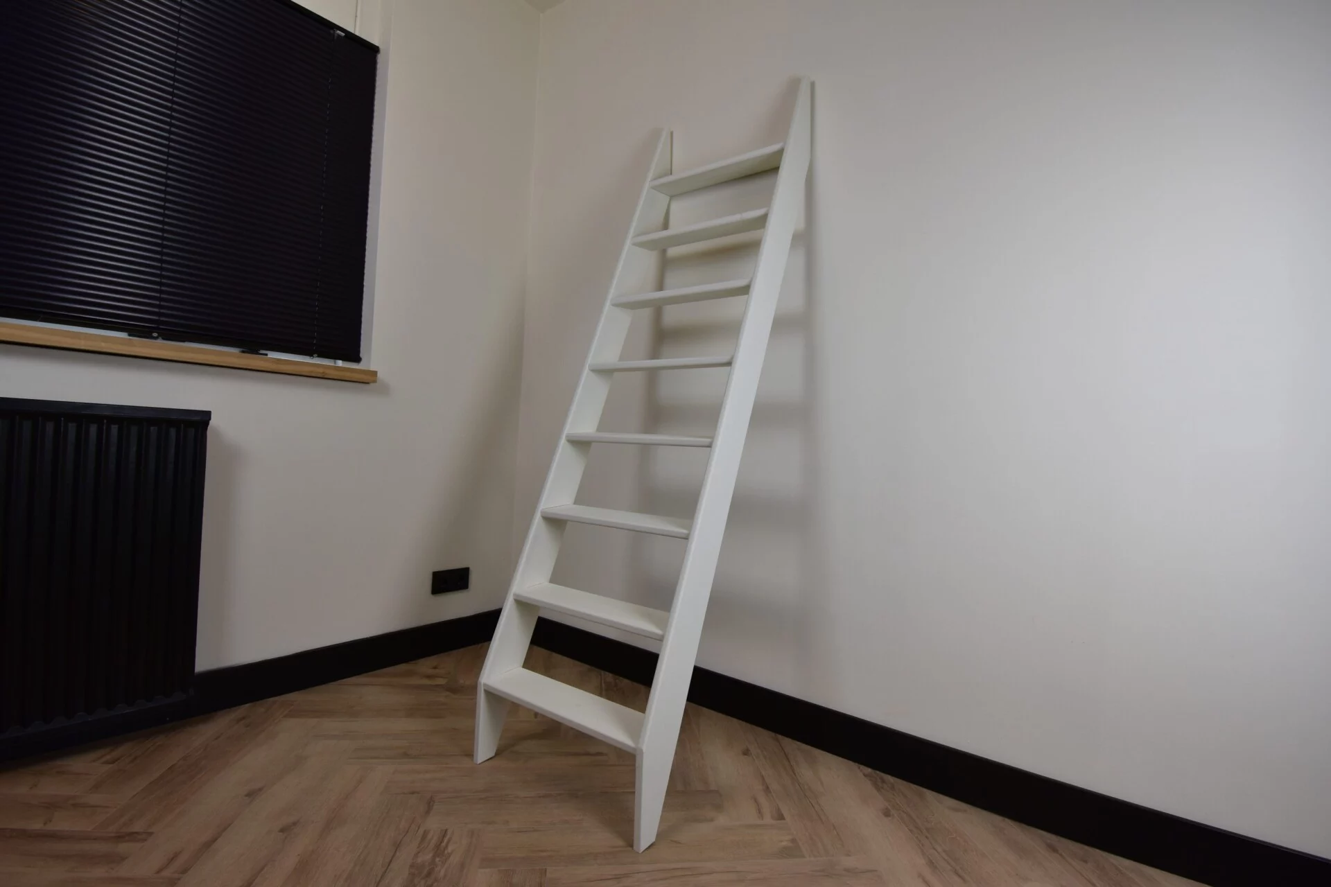 Op zoek naar een ruimtebesparende trap welke wel goed beloopbaar is? Zoek dan niet verder! Wij produceren deze trap geheel voor u op maat. Je kunt zelf kiezen met hoeveel treden wij jouw trap moeten uitvoeren. We produceren de trap vervolgens naar jouw gewenste maatvoeringen. Je kunt hem daarna direct in elkaar zetten en op locatie plaatsen.
