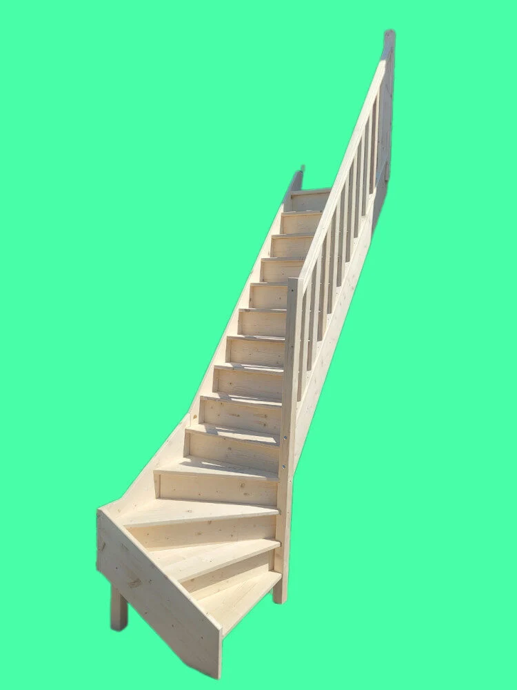 • Houtsoort: Onze trappen zijn standaard van vurenhout, maar kunnen worden afgewerkt in verschillende kleuren en lakken.