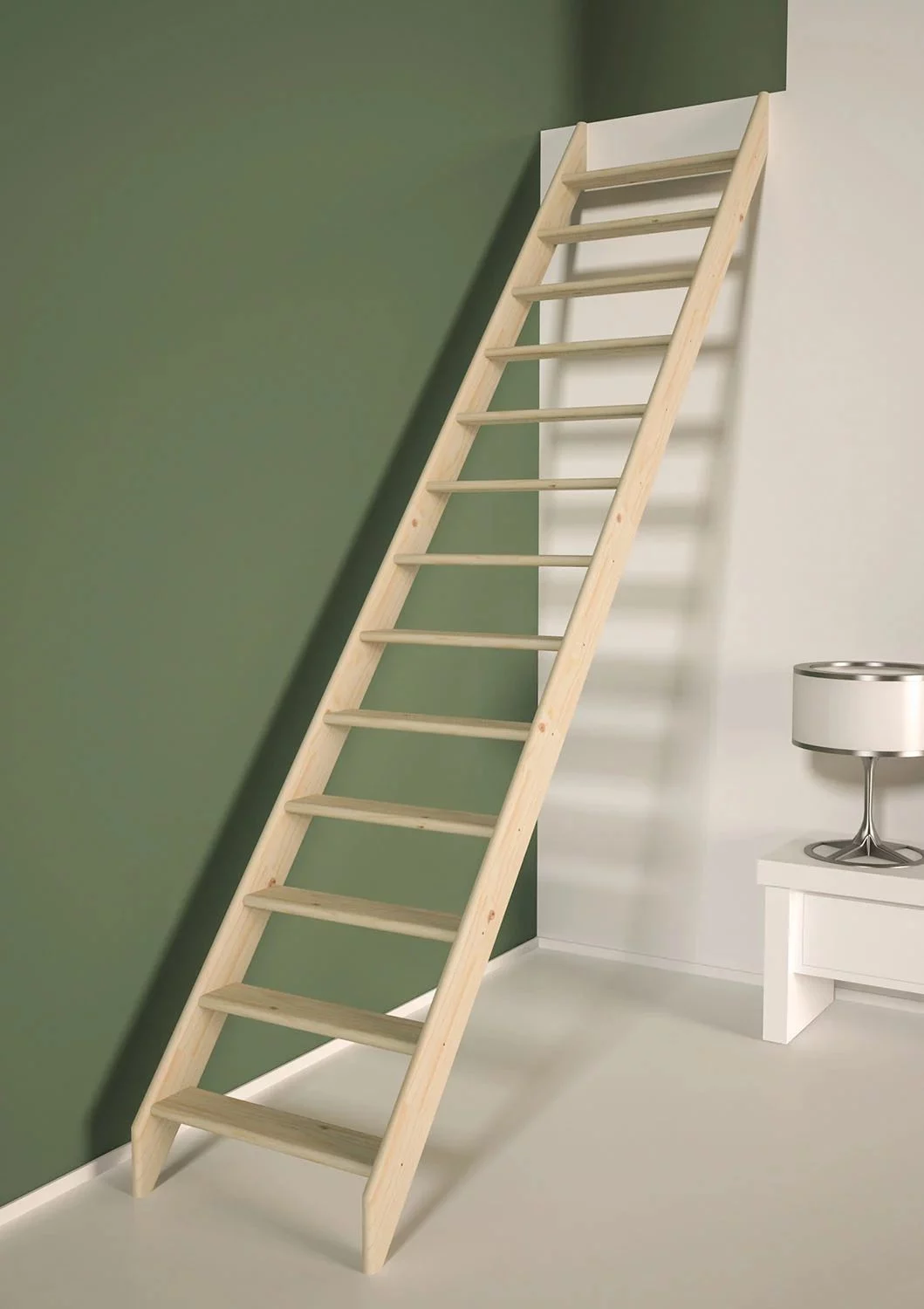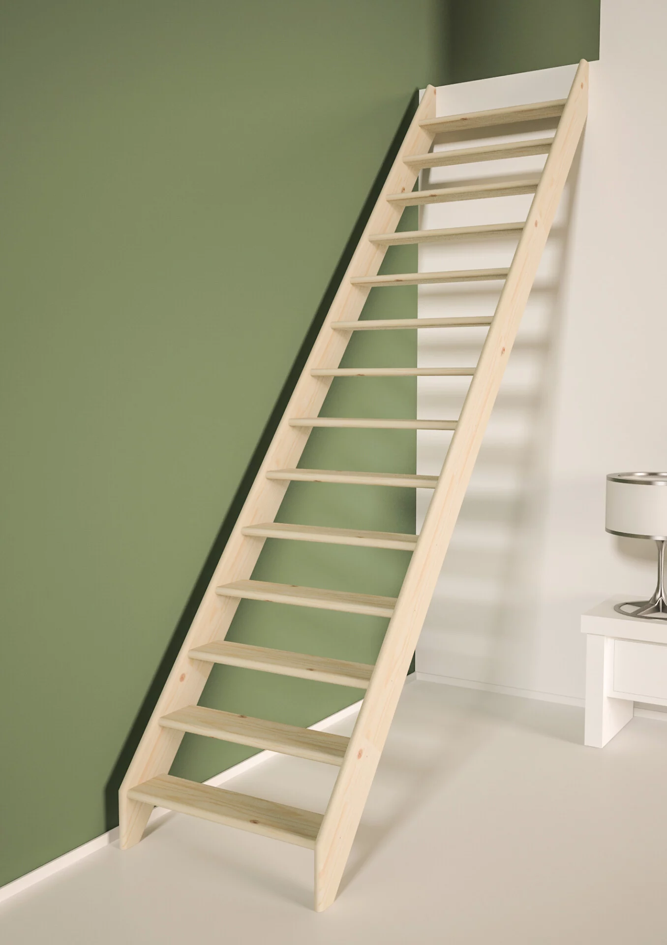 Dit hangt af van de hellingshoek en aantrede van de trap. Een steektrap op maat kan exact worden aangepast aan de beschikbare ruimte.