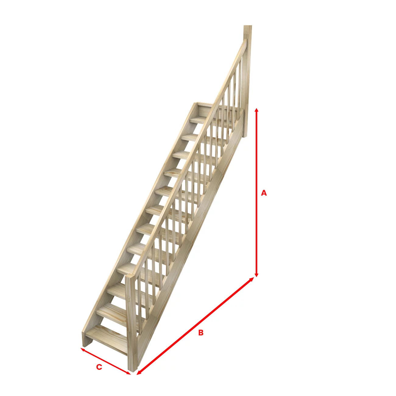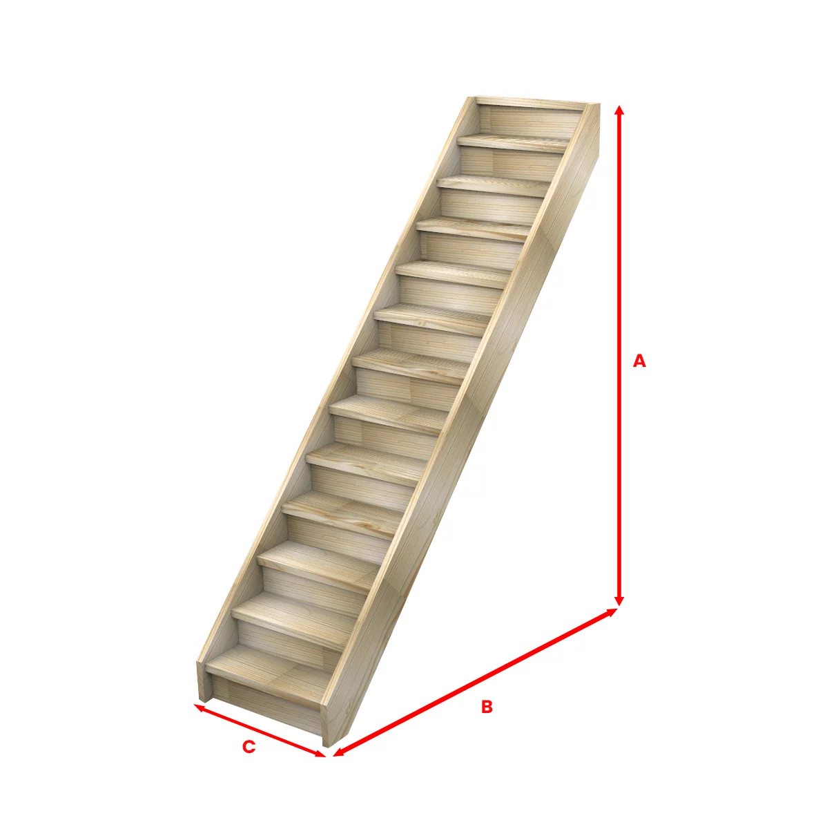 Onze steektrappen worden voor u op maat gemaakt. Onze trappen worden vervaardigd uit massief vurenhout, met een door u gekozen stootbord. De traptreden en bomen zijn 38 mm dik. De trap komt bij u aan als bouwpakket, welke u gemakkelijk kunt monteren. De trappen dienen afgeschilderd en geplamuurd te worden na plaatsing van de trap. Eventuele noesten en beschadigingen zijn hierdoor niet meer te zien. Via de mail krijgt u voor aflevering een handleiding meegestuurd.